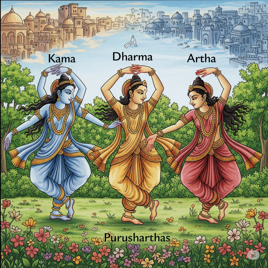 Holistic Well-being: The integration of kama with dharma (ethical living) and artha (material prosperity) underscores the importance of balancing various aspects of life for overall fulfillment. This holistic approach to well-being remains a valuable framework for contemporary life.
